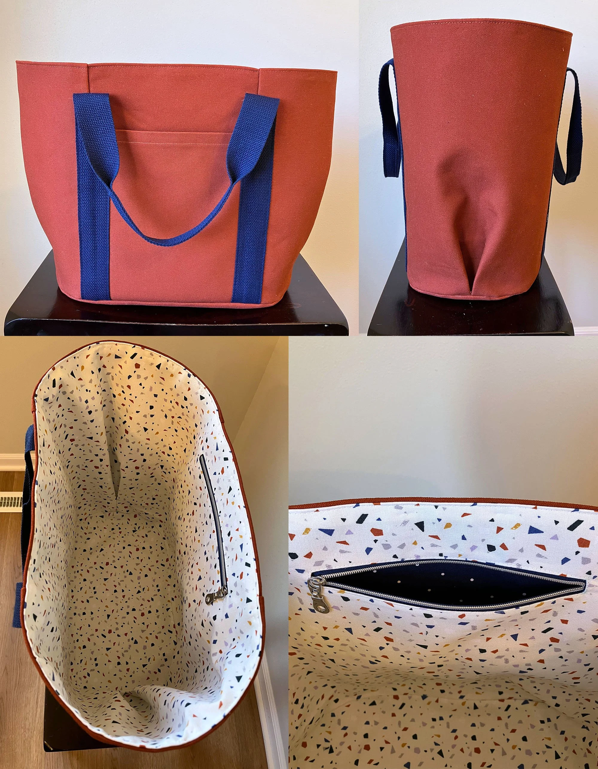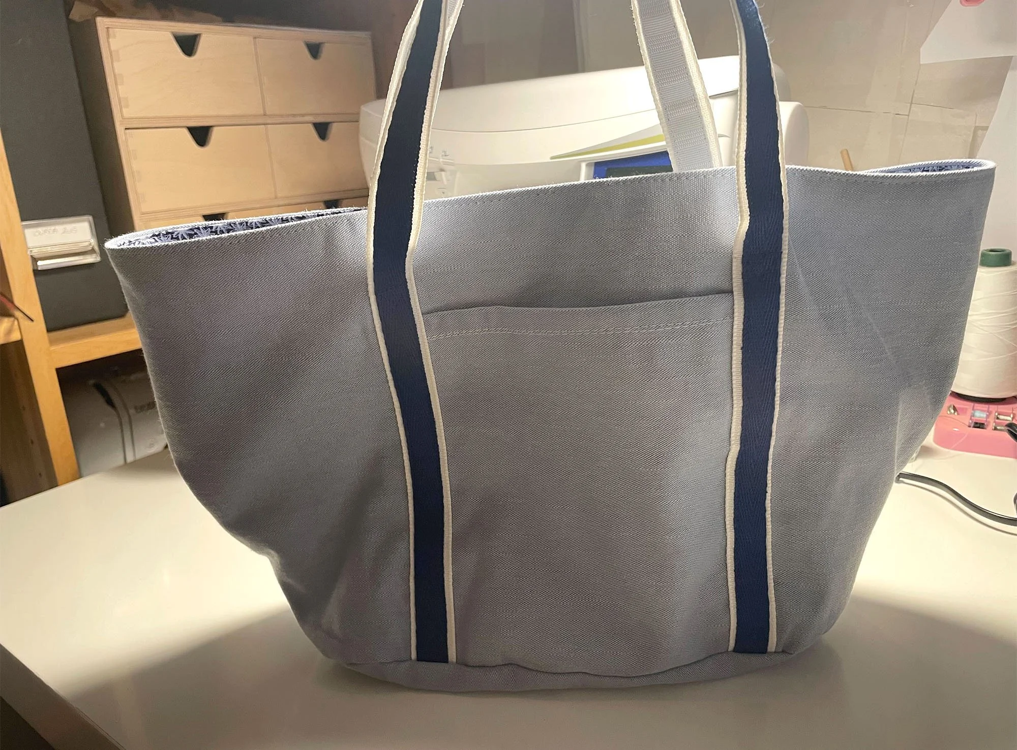 Sewing this tote was a very fun project. The fabric layout options were a great visual and I love the external pocket. I also love that you can mix and match the welt pocket vs the patch pocket between the two sizes with minor modifications. The basting stitches meant the curves went together smoothly. Overall- highly recommend!