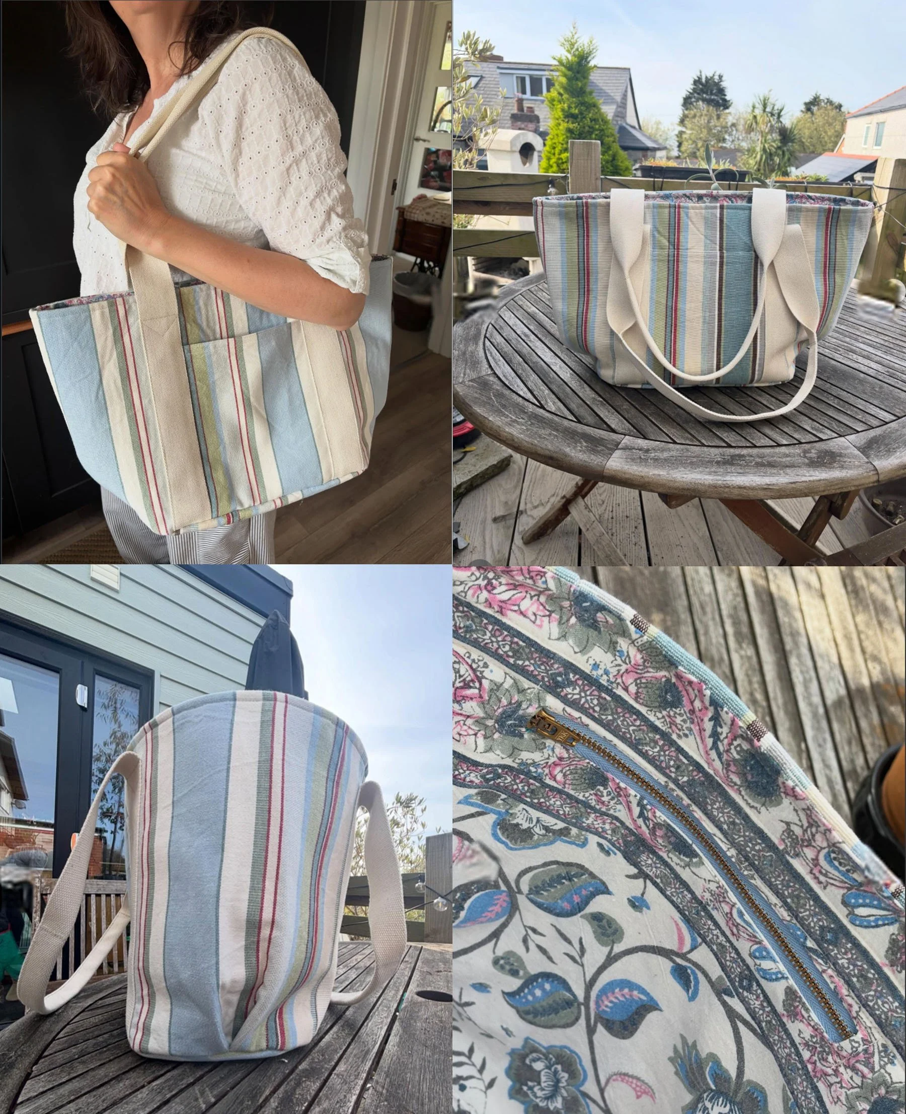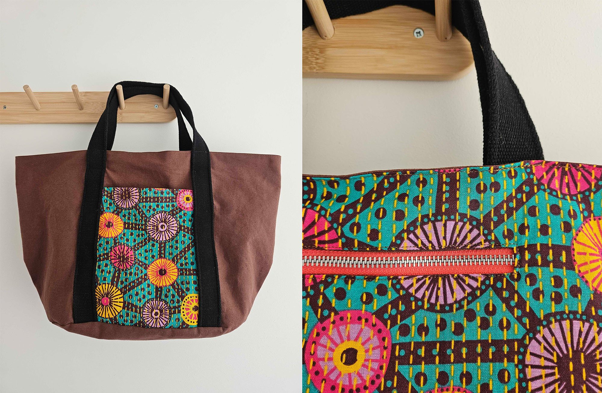 “I LOVE this bag! The construction was very straightforward and easy, and it was fun to use the provided planning sheet to dream up colour blocking ideas. It was fun to make and the instructions were all very clear. It's a good size for a number of uses, yet still really cute to carry. I love the zippered interior pocket, which was easy enough to install even without a zipper foot. This would be a great first bag project for someone, but also a fun make with lots of opportunity for creativity for more experienced sewists.“